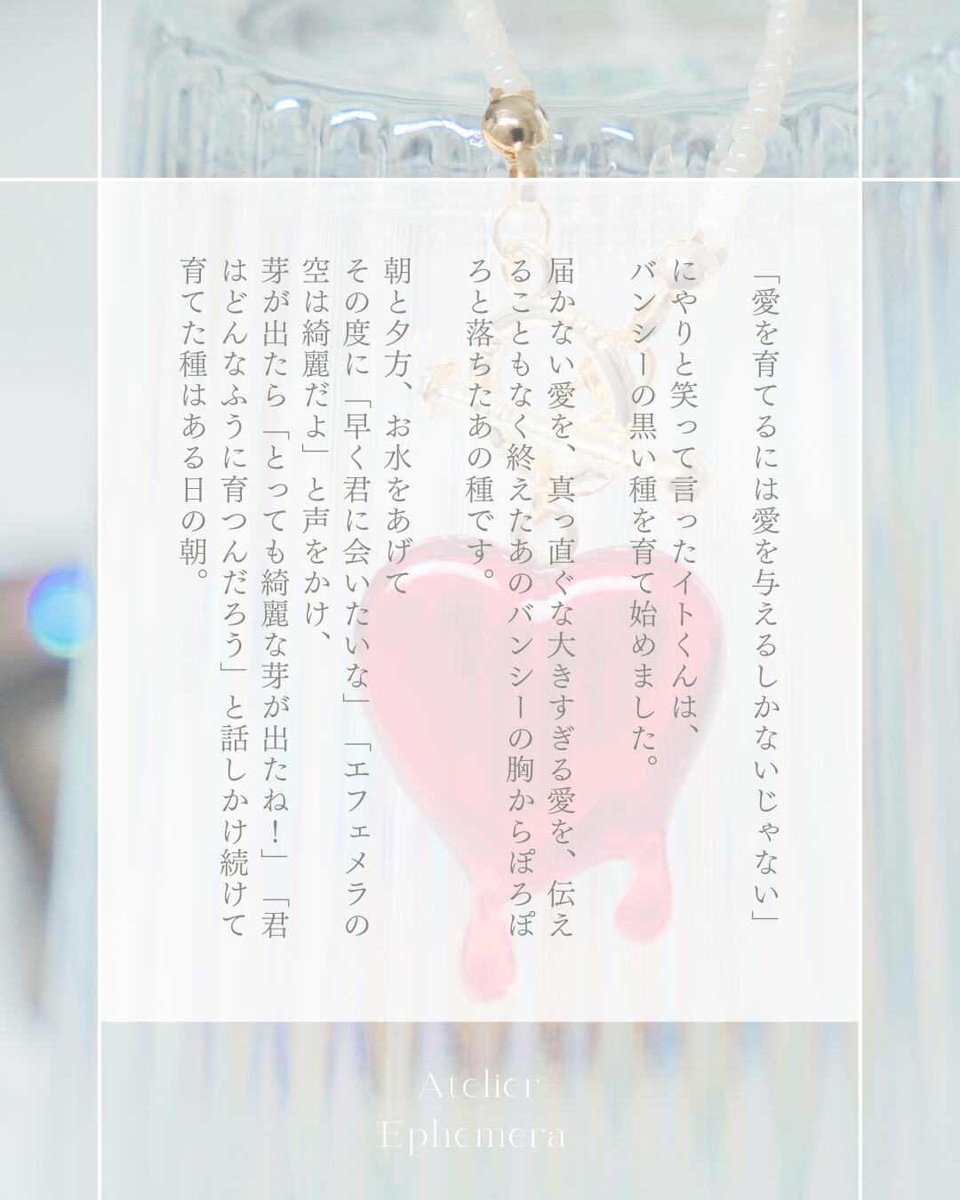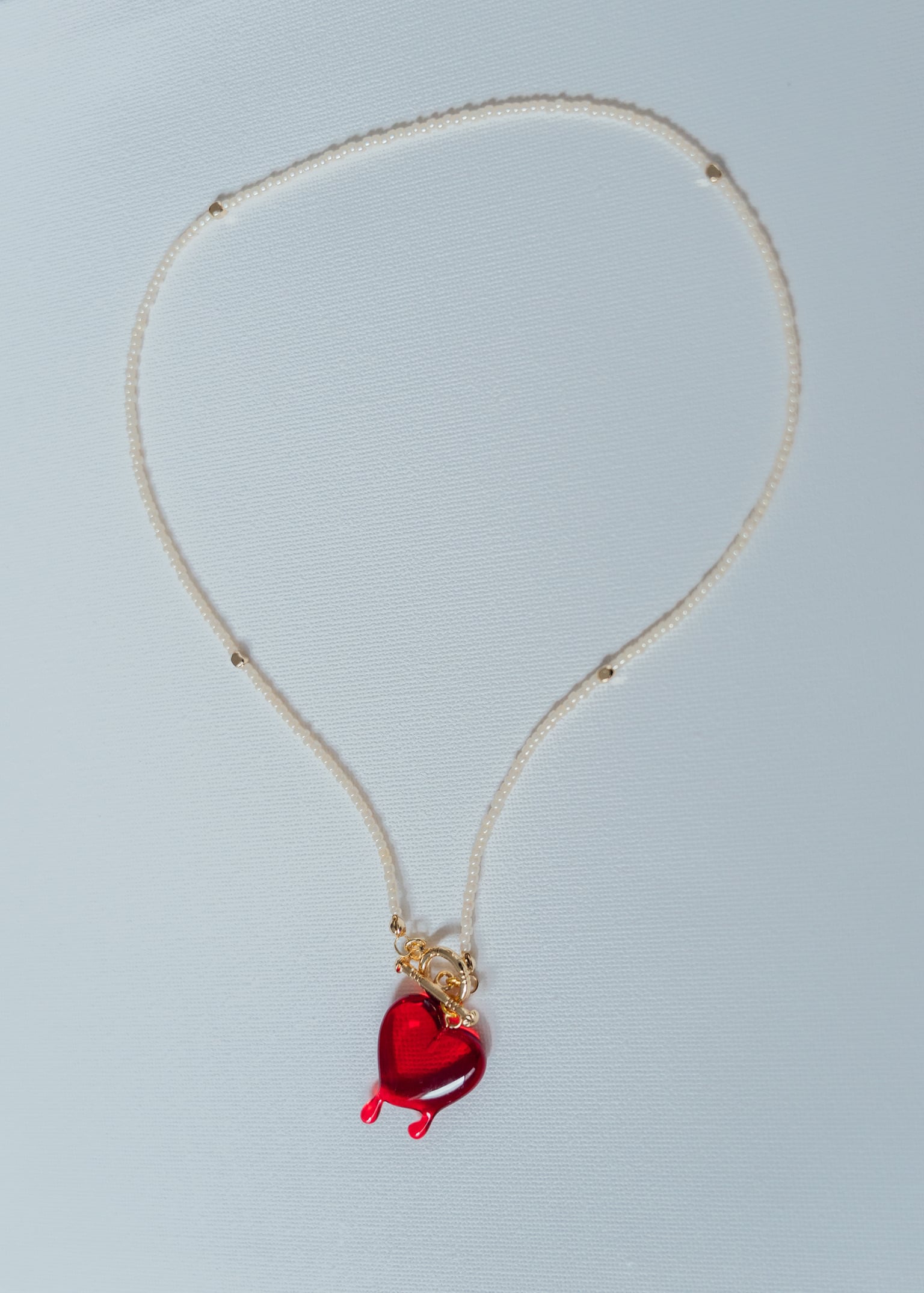 真紅のハートモチーフの可愛らしさを、シンプルなビーズで仕立てることで大人の遊び心を表現しました。